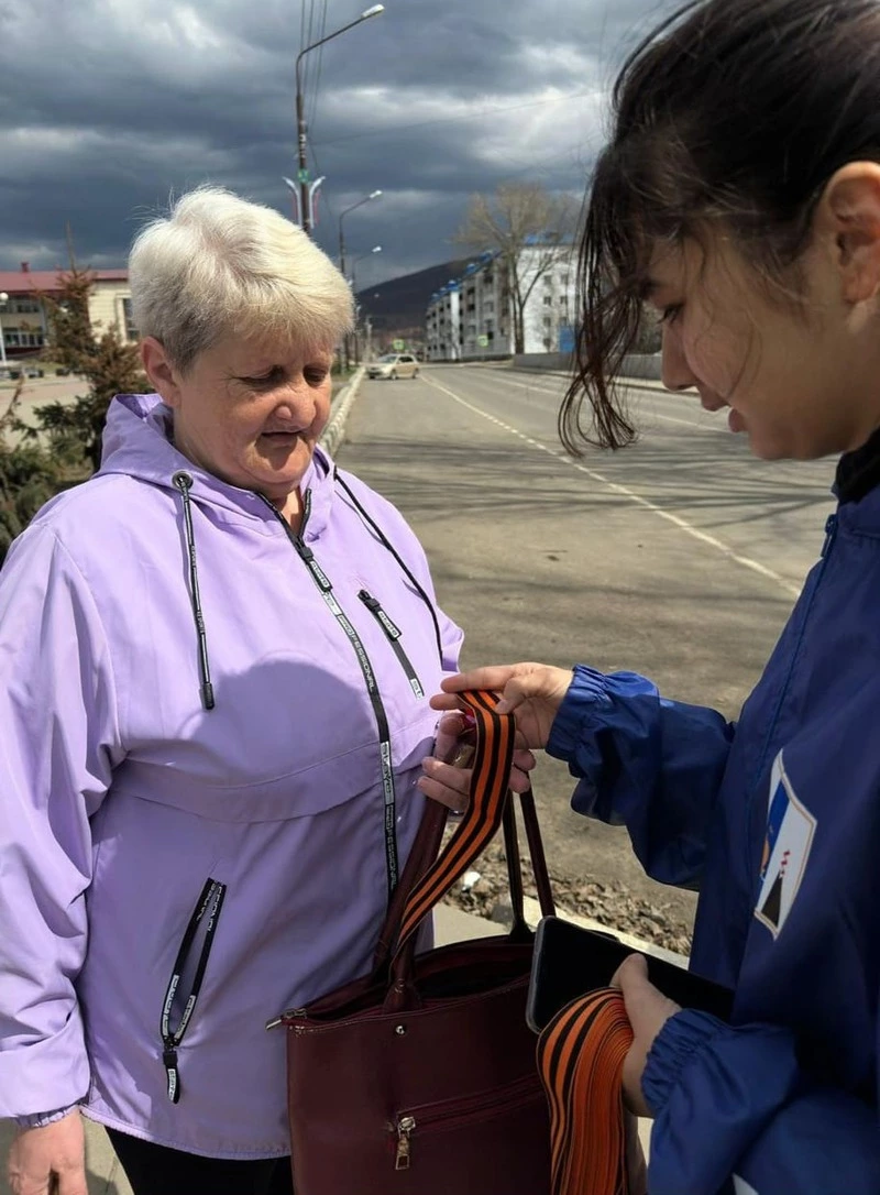 Весьма обширная программа у тымовской организации волонтеров «Сила поколения – кто, если не мы!». С прошлой недели они включились во Всероссийскую акцию «Георгиевская лента», которая проходила на улицах, скверах, центральной площади Тымовского и в других общественных местах. Вместе с ним волонтеры из всех школ, участники «Движения первых», «Юнармии» раздавали Георгиевские ленты по всему району. Было передано свыше 1500 ленточек. Символ воинской славы – Георгиевская лента обладает объединяющей силой для всех россиян. Значение её теперь имеет более широкий смысл, если раньше Георгиевская лента означала победу в Великой Отечественной войне, то сейчас – это предмет гордости и уважения подвигам защитников Отечества. Георгиевскую ленту крепят к одежде, публично демонстрируя свое уважение к воинам, сражавшимся за Отечество, всенародную гордость за Великую Победу.