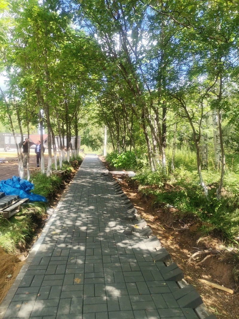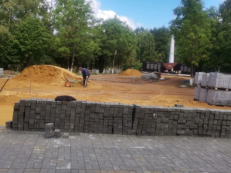 Чтобы успеть уложить покрытие к памятным мероприятиям до начала сентября, подрядная организация с конца прошлой недели увеличила количество работающих на объекте. В настоящее время ведутся работы по укладке тротуарной плитки. Общий объём работ – 1500 квадратных метров.