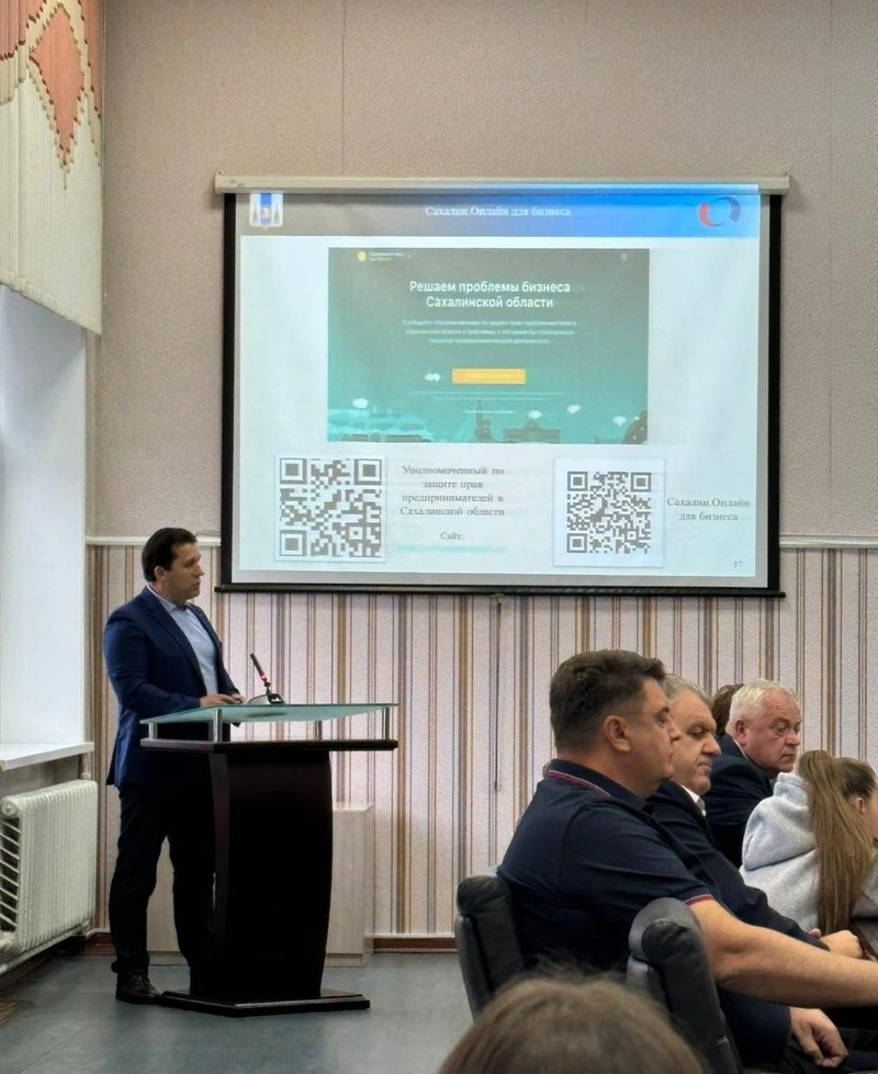 На этот раз - с участием уполномоченного по защите прав предпринимателей в Сахалинской области Андрея Сергеевича Коваленко, президента союза «Торгово-промышленная палата Сахалинской области» Галины Юрьевны Дзюба, а также прокурора Тымовского района Константина Вячеславовича Дурнов.