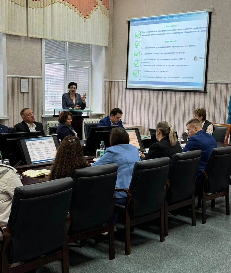 Президент союза «Торгово-промышленная палата Сахалинской области» Галина Юрьевна Дзюба подробно рассказала о региональном бренде «Сахалин - Знак качества», а также о процедуре получения права на его использование. И, конечно же, предложила тымовчанам участвовать в этом процессе для продвижения своих товаров, отметив, что 14 субъектов предпринимательства в островной области уже присоединились к нему.