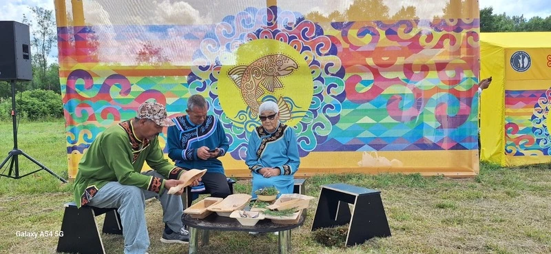 Большое праздничное действо - яркая концертная программа, гонки на традиционных лодках, национальная борьба, стрельба из лука, метание гарпуна, перетягивание каната, прыжки через нарты и дегустация блюд национальной кухни и выставка декоративно-прикладного искусства - развернулось на живописной поляне на берегу реки Тымь.