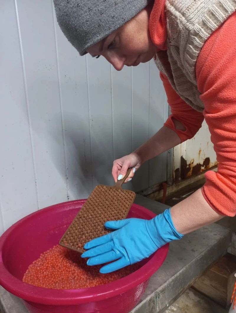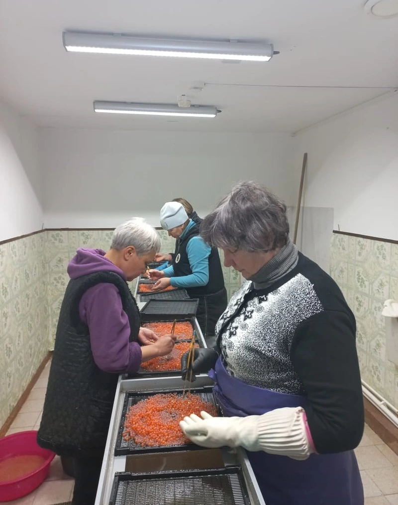 Обслуживает эти 35 миллионов лососевых коллектив питомника из 15 человек, причем участвуют не только специалисты-рыбоводы, но и рабочие, водители, сторожа, операторы котельной, то есть, практически все, независимо от должности, выполняют уход за икрой. Одновременно на коллектив легли хлопоты, связанные с капитальным ремонтом. Необходимо было после него все расставить и уложить по своим местам, как требует производство.